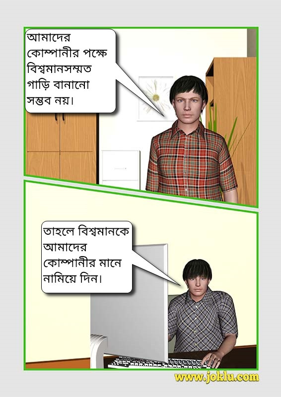 ম্যানেজারঃ আমাদের কোম্পানীর পক্ষে বিশ্বমানসম্মত গাড়ি বানানো সম্ভব নয়।